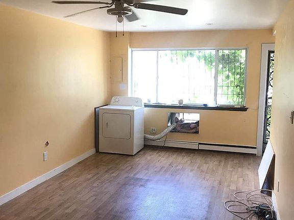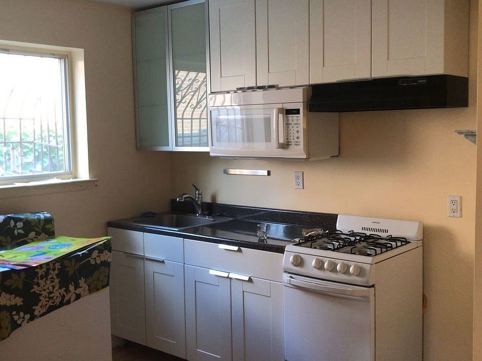 Massive 2 bedroom apartment with a private driveway+backyard HUGE living room in the front end of the apt equipped with enough space to comfortably fit a sizable couch, entertainment center, dining table and then some. Both bedrooms are on the back end of the apartment and get plenty of natural light. The kitchen is nestled in its own nook in the center of the unit and features a gas stove, microwave and a modern fridge. Hardwood floors through out. LAUNDRY IN UNIT! Outdoors: front yard and backyard What else do you need. Close by to the Morgan L, Jefferson L ,Myrtle JM trains. *NO FEE* Amenities... Hardwood Floors Private parking Outdoor Space Private backyard Built in microwave Washer dryer installed