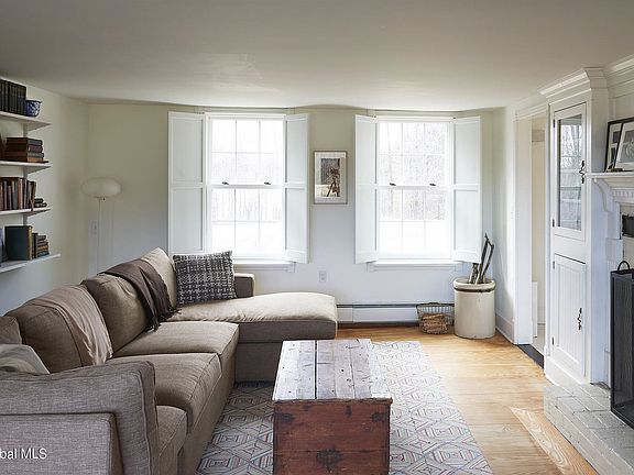 Beautifully restored farmhouse on quiet country rd w/ wonderful views of the Berkshires. Situated on 5.7 expansive acres, house features a large living rm w/ window seat & working fireplace, elegant dining rm, big country kitchen w/ wd burning stove & bay windowed breakfast area. First floor includes a sunny 3-season rm, bathroom w/ clawfoot tub, & tiled mudroom w/ washer/dryer & large garage. Upstairs is a large primary bedroom w/ picture window & walk-in closet, bathrm, 2 more bedrooms w/ closets, & a reading area. Expansive, level backyard w/ picnic area framed by fields, farmland, & mountains. House dates from 1788, w/ original details thru out, & modern updates & broadband cable service. Close to skiing, Berkshires & Hudson Valley attractions, & in Summer there's a farm stand on rd.