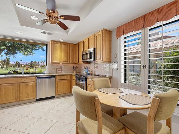 Fabulous down fairway views from this updated, 2BD+Den/2BA, 30 Plan! Kitchen looks onto the golf course and features stainless appliances, custom cabinetry, granite counters, and recessed lighting. Neutral tile & paint, remodeled primary bath, corner desk in guest bedroom, plantation shutters, updated lighting, and ceiling fans. Converted atrium features built-in shelving and leads to the Den/TV room with Murphy bed. Insulated 2 car garage with additional storage. 27 holes of Ted Robinson designed golf, 13 tennis courts, 20 pickleball courts, bocce, and 37 pools for your enjoyment. Centrally located in the heart of Palm Desert, Monterey CC is one of the most active clubs in the desert.