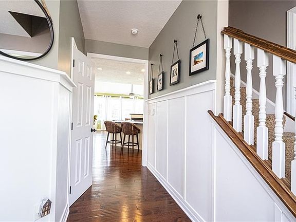 This amazing Heartland built home stands out from the rest w/ it's spacious & functional floor plan. As you enter the foyer you will be greeted w/ 9 ft. ceilings, custom board & batten wainscoting, & beautiful H.W. floors. Left of the foyer are french doors that lead to the formal living/den area. To the right of the foyer is a stunning dining room w/ wood accent wall & sliding barn door leading to the kitchen. A center island, double wall oven, gas cook top, & large pantry complete the perfect chef's kitchen. Entertain w/ease in the light & bright sun room & family room open to the kitchen. 4 bedrooms & 3 full baths on the upper level! Master on-suite offers a trendy double bowl vanity, soaking tub, separate commode/shower area, & huge walk-in closet. The walk-out basement w/ 9 ft. ceilings is plumbed for a full bath and ready to be finished. 1st floor laundry, updated lighting, hardiplank exterior, and a custom exposed aggregate patio & fire pit. 1 year home warranty included!