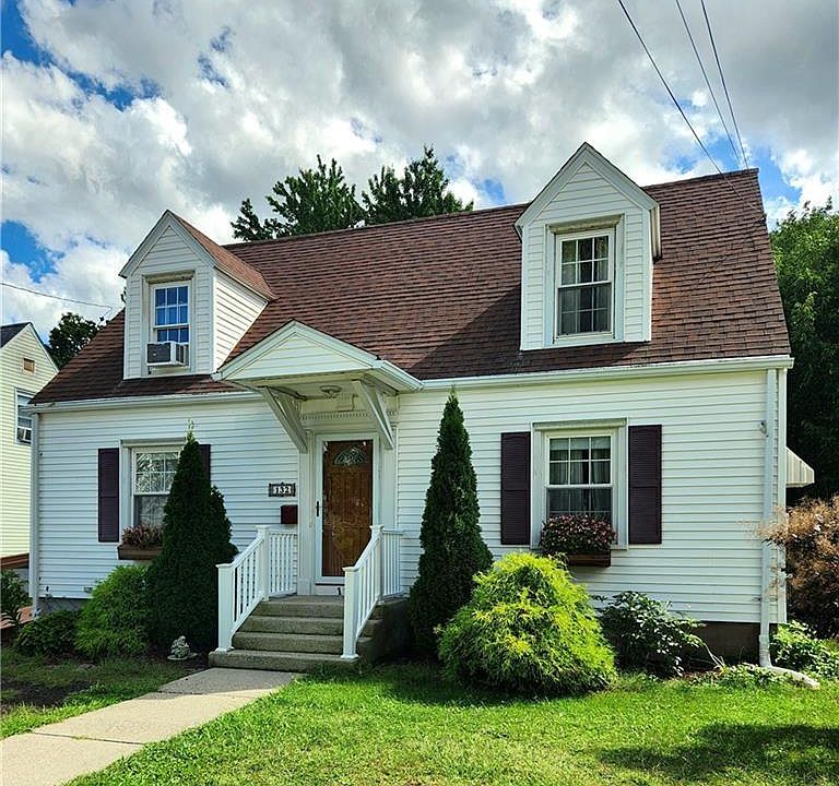 This updated 3 bedroom home with finished lower level is ready for you to move right in! Gleaming hardwood floors were just refinished (Sept. 2023) in the living room, dining room, hallway and 1st floor bedroom! Newly painted walls and trim along with brand new carpet in upstairs bedrooms give this home a crisp clean look! In the kitchen you'll appreciate the brand-new dishwasher, oven range and newly purchased microwave that look great with the white cabinets & white subway tile backsplash! There's plenty of counter space and storage in the upper and lower cabinets along with the pantry. The kitchen w/ breakfast bar is open to the dining room. Crown molding and raised panel walls in the good-sized dining room add sophistication to this room! The living room w/ hardwood floors is just around the corner from the kitchen & dining rooms. An updated full bath w/ modified step in tub w/ shower is adjacent to the 1st floor bedroom. On the upper level are two good sized bedrooms with brand new carpeting and paint. The basement is partially finished and used as a play room. An enclosed porch overlooking the private back yard adds even more space to this home! A drive under garage provides storage space for tools & a car. The large level back yard backs up to a seasonal brook. This expandable Cape Cod home has been rough plumbed for a bathroom on the upper level. The electrical system has been upgraded to 200AMP service. Oil tank was replaced 2 years ago.
