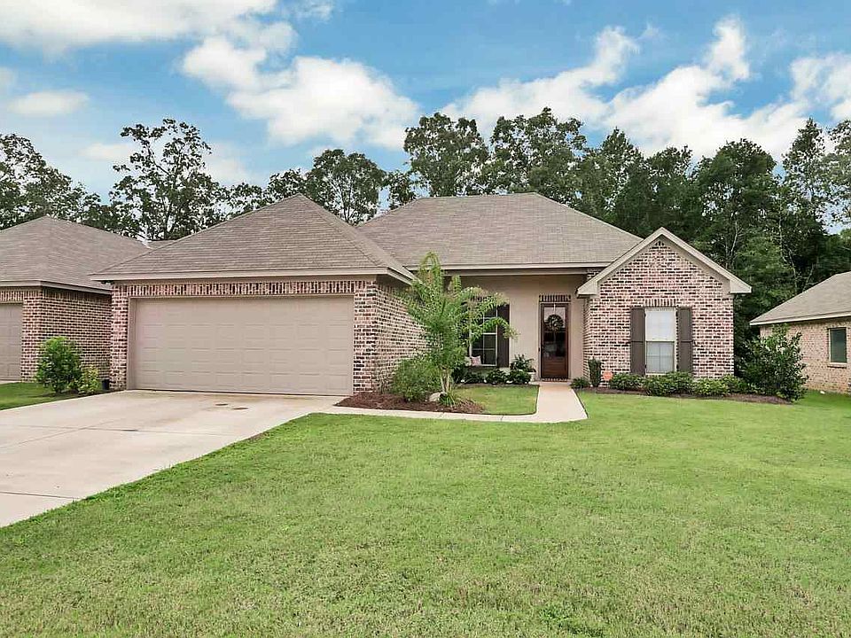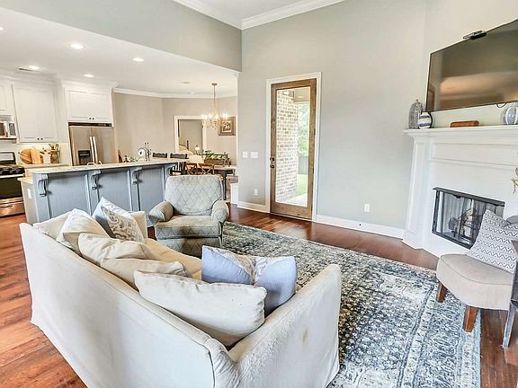Welcome Home to Greenfield Ridge of Greenfield Station! This well-maintained 3 Br/ 2 Ba home features hardwood floors in the living areas, a great open floor plan with a fabulous (large) kitchen, breakfast nook with built in bench, a pantry and a den with 12 foot ceilings and a corner fireplace. The bedrooms all have stained concrete floors and the master suite has a large master bath with double vanities that are separated by a linen cabinet. There is a jetted tub and a separate shower as well as a walk in closet. The backyard is very private, has an extended concrete patio, an outdoor fireplace and has NO homes behind it! It backs up to a wooded buffer that is undeveloped. Call your Realtor today to schedule a private viewing. This home qualifies for 100% USDA financing and will not last long!