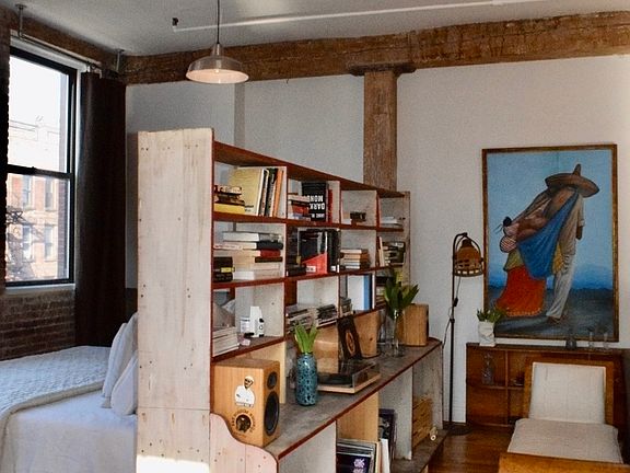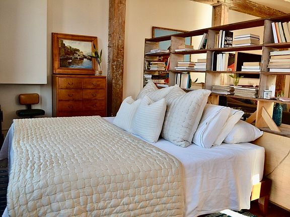 Beautiful loft living in the heart of Greenpoint. 1,050 SQ FT brick loft with 12.5' ceilings, a cast-iron fireplace, AC, massive windows, radiant heat bathroom floors, W&D in unit, dishwasher, and a rooftop! The apartment is also already wired for Verizon Fios. One bedroom, huge walk-in closet, and large bathroom. This is a pre-war building with modern finishes and appliances. Some of the furniture pictured might be available for purchase.