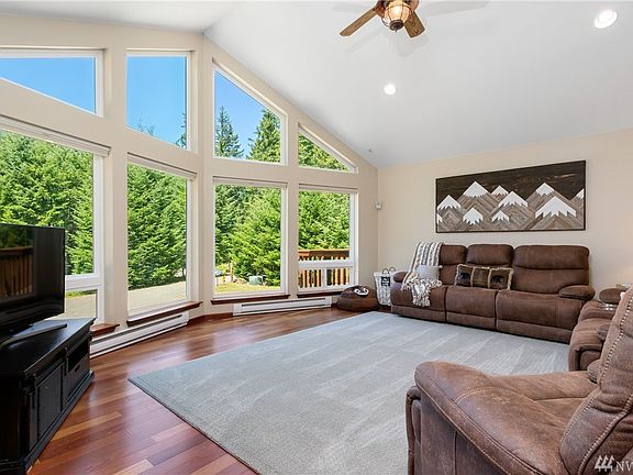 Escape to the privacy of a stunning, fully furnished & equipped mountain retreat w/floor to ceiling views of spectacular scenery just beyond the windows of your chalet. Towering vaulted ceilings, gourmet kitchen, s/s appliances, custom cabinets, gas f/p w/tile hearth, high-end finishes, rich hardwood floors, master suite w/private deck, 364 SF studio/office w/full bath & kitchenette, RV parking, 2-car garage, community swimming pool & tennis courts.