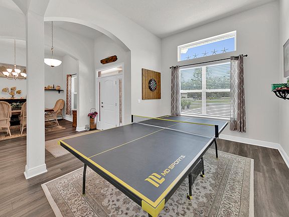 Just 15 minutes to the beautiful sugar white sands of the emerald coast, this like new beautiful 4 bedroom 3 bath by Holiday Builders Monaco floor plan located on the 14th fairway of Windswept Estates. 12' foot ceilings throughout all central living spaces, very open and spacious, 4' garage extension, soft close cabinet doors throughout, Roman White quartz counter tops, levered door handles, pull down stairs, extra LED lighting, flood lights, upgraded baseboards, stainless steel appliances, tiled master shower. Lots of builder upgrades, this is a must see! Residents enjoy an array of amenities to include a community pool, clubhouse, pavilion with a BBQ grill, tennis and pickleball courts, basketball facilities, a playground, and even the convenience of weekly food trucks. Special holiday events and scenic walking trails complete this vibrant community.