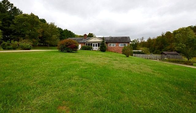 Nice land close in also has a lovely view of a hillside pasture. All brick ranch has an oversized garage, laminate flooring in the kitchen/dining area, wood burning fireplace, and walk up attic which has ample space for storage. The basement is partially finished with a den that has EBB heat which has been disconnected, but is still in place. There's also an office in the bsmt that's not heated but finished. The office and den total about 600 sq. ft. There is a third bath in the basement that needs work. A buyer could easily add heated square footage to this house. Inground pool needs total rehab. Detached wired workshop plus storage building.