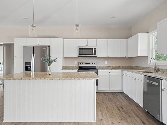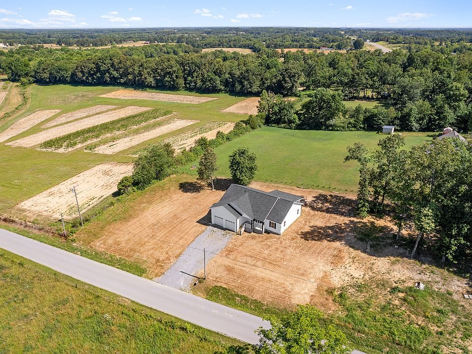 1.19 acres! Step into this charming new construction home, thoughtfully designed with numerous upgrades and breathtaking views! Featuring 3 bedrooms and 2 bathrooms, the spacious open floor plan showcases elegant lighting fixtures, LVP and tile flooring, and a stunning trey ceiling in the living room. The beautiful kitchen is a chef's delight, with stainless steel Whirlpool appliances, granite countertops, a kitchen island, and ample cabinet space. The primary bedroom boasts a large closet, while the primary bath offers a tile shower, tile flooring, and a double vanity. Exterior highlights include an attached 2-car garage with beautiful epoxy floors, a covered front porch, and a covered back patio, perfect for outdoor enjoyment.