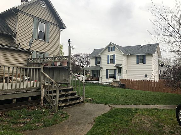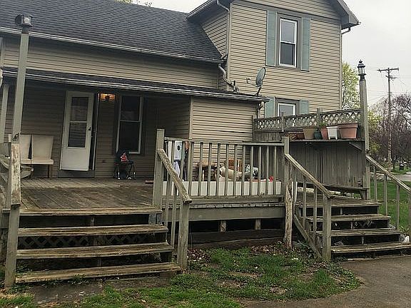 2 bedrooms upstairs, 1 small bedroom downstairs 2 car detached garage. House needs updated but structure is good