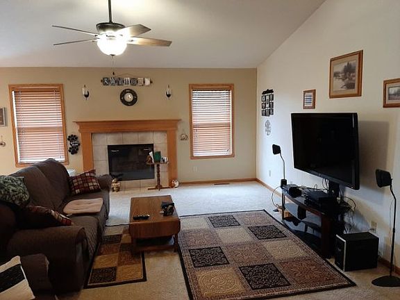 NOTHING TO DO BUT MOVE IN! Perfectly maintained 3 bedroom, 2 bath, 2 car attached garage home. Partially finished basement includes a recreation room and family room. There is an additional roughed in room in the basement if you needed additional space, easily finish that if desired. Master bedroom bath area boasts a walk in closet. Living Room boasts cathedral ceilings and a gas fireplace. Cathedral ceilings in kitchen dining area as well. Main floor laundry! Patio doors lead to the fenced in yard. Plenty of new in this home! Freshly painted and new carpet in 2022. Roof is 3-4 years old, water heater 2 years old, new garage door in 2021. Ask your agent for the list of updates. Schedule your showing today!!