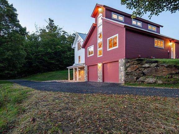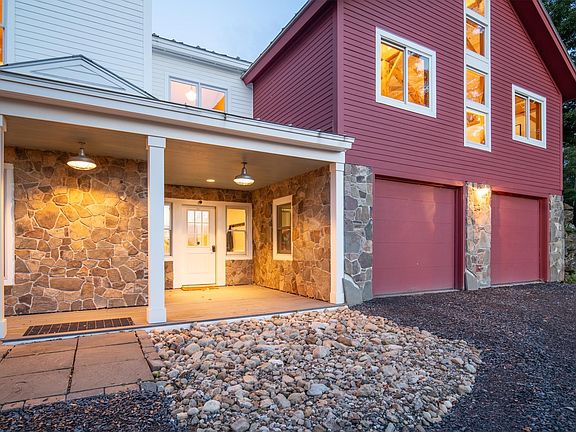 Up on a ridge. Among the maples. In the sun. Expansive views, both east and west, from valley floors to mountain peaks. Lofty fenestration, stonework, and best-of-the-best standing-seam metal roofing. Light-filled wide-open floor plan with ideal flow. Front porch. Back porch. Side porch. Huge mudroom accommodates everyone. Adjacent heated 2-car garage, laundry, bedroom suite, and TV room. Easy gathering in the heart-of-the-home wide-open kitchen/dining/living space with timber-frame monitor-barn frame and clerestory windows. Enjoy a quiet read alongside the wood-burning fire. Fill the house with friends and family. Everyone spills out onto the deck and lawn to BBQ and take in the sunset. The kids run off for more adventures in the woods. New kitchen layout with patinated cabinets, farmhouse sink, quartz, and huge island; including brand new: Wolf Range and Sub-Zero fridge and wine cooler. Coziness balanced against loftiness. Wide pine floors. Viessman high-efficiency boiler. Radiant floor heating. FIBER OPTIC INTERNET. 13.9 acres. 2nd floor primary suite with walk-in closet and lux white marble bath. Total privacy. Minutes to town and skiing. Anticipation as the winter storm envelops the house and the snow relentlessly accumulates. The morning newspaper and an espresso in a sunny corner of the porch. Famished mountain adventurers return with local provisions for the feast. Live this dream.