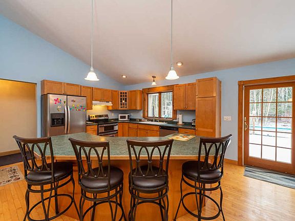 This contemporary ranch style home boasts one level living and 6.45 +/- acres of ponds, woods and open field. Open floor plan, large owner's suite with walk-in closet, soaking tub and separate shower. The laundry and guest bedrooms and bonus room are conveniently located on the main floor. A full, unfinished basement offers options for additional living space, office, family room, learning center or for ample storage. Large deck overlooking the back yard. The garage has parking for 3 vehicles and a workshop on the first floor plus an oversized 1 bedroom apartment above.