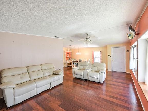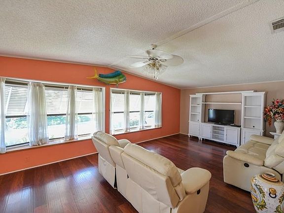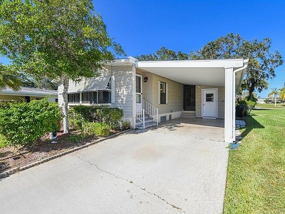 BEST VALUE IN RIDGEWOOD...You own the land and home. This 2/2 1602 sq. ft. manufactured home features an open floor plan, large kitchen, interior laundry, spacious side screened porch enclosure, expansive storage room and much more. SOLD 'AS IS.' Great opportunity for INVESTORS or OWNER OCCUPANTS ready to make it their own. Updated eat-in kitchen boasts a large island, granite countertops and stainless steel appliances. Beautiful laminate flooring through out living areas. One car-carport. Ridgewood is an active, 55+ gated community with security, that offers a community pool, recreation building/activities and tennis courts. Minutes from shopping, restaurants, I-75, beaches and more.