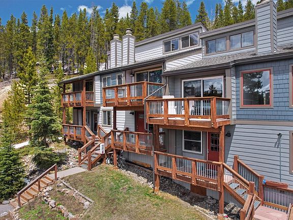 Discover your mountain home in this delightful, sun filled 3-bedroom, 2-bathroom townhome nestled just outside of the heart of Breckenridge. Perfectly positioned for both adventure and relaxation, this home is ideally located for quick access to Main Street and your favorite hiking and biking trails. The kitchen and bathrooms have all been recently updated, along with gorgeous new flooring. Enjoy the south-west facing decks with ski area views; it's a perfect place to soak in the afternoon sun. The roof & siding have been recently replaced with all assessments paid by seller. Find storage galore in the loft area, the ski locker and the large closet on the back patio. The back patio faces a nicely wooded area offering privacy and puttering in your garden. This townhome presents an exceptional opportunity to own a piece of Breckenridge at an affordable price. The Free Bus stop (aka Free ski shuttle) is 100 paces from the front door.