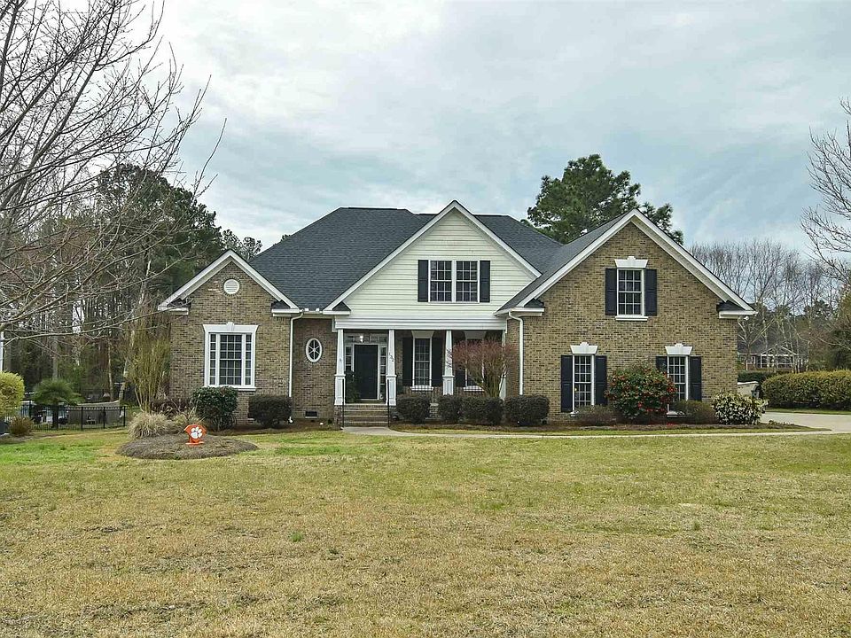 Very well maintained all brick 4 br, 3 bath on pond in Muirfied Subdivision! Open floor plan with cathedral and trey ceiling and hardwoods. Screened porch and deck overlooking peaceful pond. New roof just put on!! Heating and Air down Feb 2018 Heating and Air up June 2014 Washer and dryer and refrigerator will remain. Propane tank on side of home for gas logs.