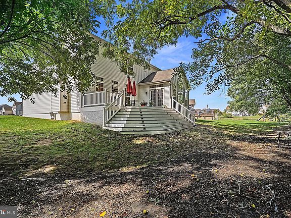 Stunnning Cortland model with 6 ft bump-out in desirable Providence Crossing. This 4 Bed, 2.5 Bath Colonial Home sits on Premium Lot in a Cul-De-Sac with Treed Lot in back for Privacy. Enjoy sitting on your 22x14 "Lighted Deck" while watching the squirrels jump from tree to tree. Entering the Home is the 2-Story Foyer w/Hardwood, to the right is a Very Nice Size Dedicated Office space. To Left is Formal Dining Room and beyond is the Formal Dining Room. Off Foyer is the Powder Room and Laundry. Entering the Huge Open Space of the Kitchen, the Morning Room and the 20x16 Family Room you will have Plenty of Space for all your Friends and Family. The Kitchen is a Cook's Dream with Loads of 42" Cherry Cabinets, Gourmet Kitchen Island with more Cabinets and Bar space for 2 Stools, Granite Countertops, Side by Side Refrigerator, Newer Stove with Air Fryer capabilities. Off Kitchen is the Extra-Large Family Room (with bump-out) and Fireplace. Off Kitchen is 12x16 Morning Room w/another Breakfast Bar, which seats 2. This Room has a Wall of Windows, Extra Long Windows and Palladiun Window providing the entire back with much natural light. French Doors in Morning Room lead out to Deck and Private Back Yard Living Space. Upstairs is the Enormous Owners Suite with Large His and Her Walk-In Closets, Very Spacious Sitting Area and Owners Bath with Shower, Tiled Surround Garden Tub, Double Vanity, Private Toilet Room. 3 Additional Nice Size Bedrooms and Hall Bath complete the 2nd floor. After all this.... if you still need more Room, head down to the Expansive Basement, since home has bump-out and also the Morning Room, the Basement is full footprint of Home. Over 80% of the Basement is Finished, presently an Office, but can be Anything you Want it to Be. Plenty of Room and even 2 Storage Areas and 3-Piece Rough-In for Bath. 9 Ft Ceilings in Basement also. Custom Window Treatments will be staying due to the extra-long length of the windows. This home sits at back of Cul-de-sac. Chandeliers in Foyer and DR do not stay and will be replaced before settlement.