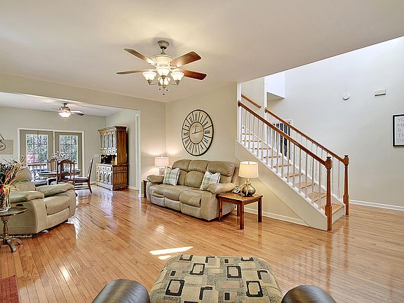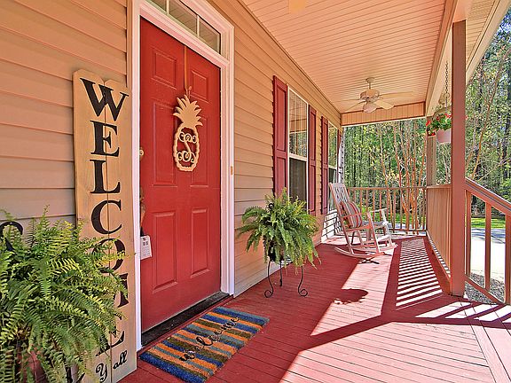 Plantation style home situated on 10.93 acre lot. Full front porch greets you as you drive up to this home. Inside are gleaming hardwood floors in foyer, hallway, family room and dining room. Large family room features fireplace and is open to the dining room for entertaining. French doors off the dining room lead to large back porch. The eat-in kitchen has ceramic tile flooring, granite counters with back porch access. Down the hall off the kitchen is a work/office area, 1/2 bath and frog access. Spacious frog has laminate flooring and could be used as 4th bedroom. Downstairs master has engineered hardwood flooring and walk in closet. Master bath has ceramic tile flooring, stall shower and separate jetted tub. 2 additional large bedrooms upstairs share the hall bath.