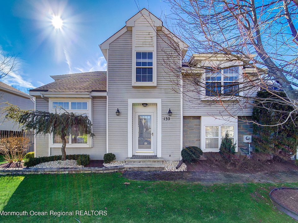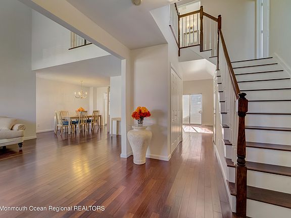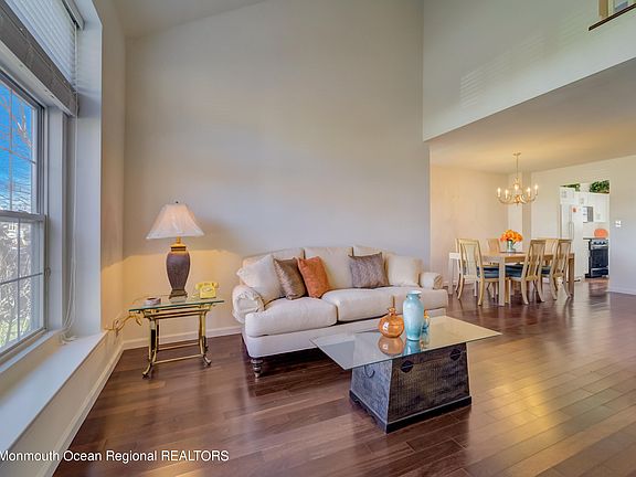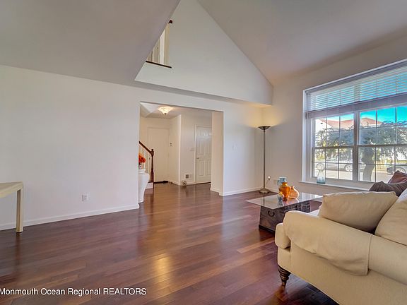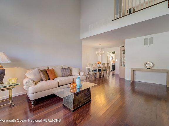 Gleaming hardwood floors flow throughout the entire 3 bedroom home in Colts Pride. As you enter, you are greeted by a light filled living room with vaulted ceilings that is open to the dining room. The back of the house consists of the open concept, beautifully updated kitchen and great room with vaulted ceilings. Custom cabinetry is topped with quartz countertops and subway tile backsplash. From here, you can access your paver patio. The main level also includes the powder room and laundry. The upper level of this home has a primary suite with two walk-in closets and bathroom with dual sinks, jetted tub, separate shower stall and skylight plus two additional bedrooms, hall bathroom and loft area. In addition, the home features a full basement, newer roof, HVAC and HWH. Community offers pool, tennis, and basketball. Conveniently located on all major highways, shopping, restaurants (downtown Freehold), NYC Transportation & Henry Hudson Trail.