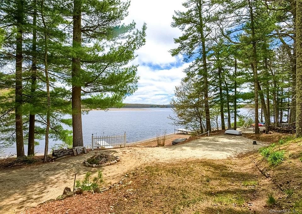 Direct Waterfront on beautiful Pachaug pond with sublime views that will wow you from room to room. This property boasts a large private beach with dock. The pristine open concept first floor showcases that no detail was overlooked. Double sided fireplace gives you the ability cozy up from both the living room and the first floor master bedroom. The Master is completed with a walk in closet and slider to deck overlooking the water. First floor laundry completes the potential for one floor living. The second floor has two more large bedrooms and a full bath. Walkout Basement has another 648 sq. feet of living space complete with a bar making it an entertainer's dream. Environmentally friendly and energy efficient Geothermal heating and central air will help you save on your heating and cooling cost. The 24x48 detached garage with heated floors and a loft that holds up to 6 cars will give you plenty of space to store your boat/cars or any toys of your choosing. Relax on the back deck and enjoy waterfront living at its best. Property has been meticulously maintained and is ready for you to move in and enjoy all that Pachaug has to offer. Bring your boat, fishing poles, waterskies, and ice skates. Let the enjoyment of living on the water start today. New Anderson door to back deck has a lifetime warranty. Chandelier in the dining room does not convey with sale. Property is being sold as is.