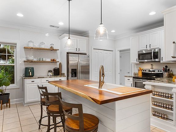 - Features: Breakfast Bar, Kitchen Island, Pantry, Stainless Steel Appliances, Solid Surface Counters