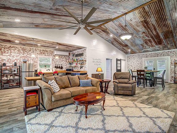 Welcome to this stunning waterfront farmhouse on Lake Princess, nestled within the highly sought-after Kings Country subdivision on Lake Cypress Springs. This charming home boasts two oversized covered patios, providing the perfect spot to relax and enjoy the picturesque views. Inside, the open floor plan creates a spacious and inviting atmosphere, with generously sized dining and living areas that are perfect for entertaining family and friends. The master bedroom offers a tranquil retreat with fantastic waterfront views and patio access. The kitchen features an amazing farmhouse sink, beautiful butcher block counters, and stainless-steel appliances. Throughout the home, you'll find great rustic touches, such as galvanized metal ceilings, shiplap walls, faux brick walls, and charming barn doors, adding a touch of character and warmth. In addition to the exceptional features of the home, the Kings Country subdivision provides several desirable amenities for residents to enjoy. Take advantage of community boat slips available for rent, allowing you easy access to your boat on Lake Cypress Springs. Other amenities include a gated entrance for added security, a playground for the little ones, a sports court and boat ramp. Property includes interior lot situated across the street from the home. Don't miss the opportunity to make this gorgeous property your forever home! Sold with most furnishings and accessories. ADDITIONAL LOTS MAY BE AVAILABLE TO PURCHASE