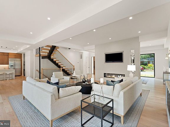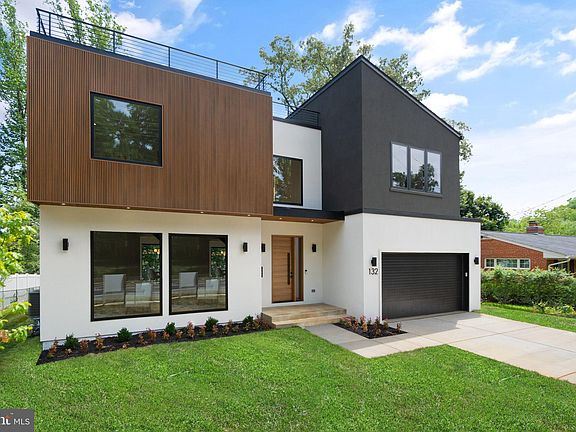 Step into this stunning 5-bedroom, 5.5-bathroom contemporary new build in the sought-after Vienna Woods neighborhood, where luxury meets convenience. Newly built by Mabna Construction, this property offers the perfect blend of modern design and quality craftsmanship. The main level features 10' ceilings, a spacious living room with oversized Andersen windows, an open family room, a sunlit dining area, and a gourmet kitchen including a Calacatta Valentin Quartz waterfall island with seating, custom cabinets, stunning Zellige Perla Polished backsplash, a 48” JennAir range with dual ovens, a 42” refrigerator, two dishwashers, and two sinks. The exquisite Red Oak see-through stairs are detailed with 4” treads and metal stringers, a true show stopper. The main level also boasts 5" Red Oak Hardwood floors, a two-sided see-through fireplace, and West Elm light fixtures. Upstairs, the primary bedroom suite is a haven with its 13' ceiling, luxurious spa-inspired en-suite bath featuring marble shower walls and floors, two shower heads and a rain shower, and large dual walk-in closets custom made with solid Birch and Pine wood. This level also includes three additional bedrooms, each having their own private bathrooms accented with stylish Ivory Square Porcelain walls, plus a convenient laundry room with a sink and storage space. The lower level boasts 9' ceilings and offers versatility with a private 5th bedroom, full en-suite bathroom, a home gym, and an open recreational space with a wet bar, featuring Midnight Corvo Quartz waterfall countertops, custom built wine & spirit display, and solid wood petit style cabinetry. The flooring is waterproof wide plank LVP, and the entire home is wired with Cat 6 and HDMI for TV and entertainment areas. The true WOW factor in this home is the 1,100 sq ft rooftop lounge, offering breathtaking views with ample space, perfect for hosting events or enjoying with the household. Additional features include a large 2-car garage with driveway parking, a rear deck for dining or grilling, and a beautifully manicured level backyard, ideal for outdoor activities. Located just around the corner from the Vienna Metro, Tysons, and the vibrant Mosaic District, this home offers easy access to urban amenities and major highways such as I-66, I-495, and Rt. 123. This new construction is the perfect canvas for creating your dream lifestyle. Schedule a tour today!