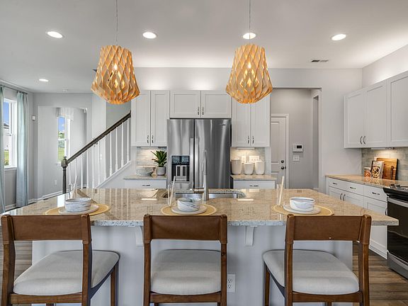 READY NOW! Upon entering the Blayre, you are greeted by a foyer that leads you into a large dining area, a spacious kitchen and a Great Room. The kitchen boasts a large island with a breakfast bar, granite counter tops, stainless steel appliances, large pantry and drop zone, an area perfect for organization. The owner's suite, 2 additional bedrooms and large laundry room with optional laundry tub are on the 2nd floor. The end-unit Blayre includes a 2-car garage.