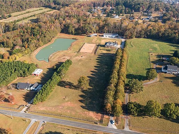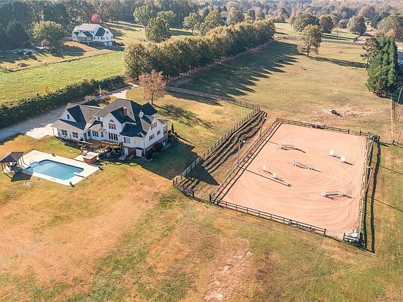 132 Lake Road in Easley – The homestead that has it all! Located in the well-sought after Wren school district, this 4 bedroom 3.5 bath home sits on almost 9 acres of land. Upon driving through the gate down the long tree lined driveway, to your left you will see four acres of pasture and a 90’x170’ lit arena just beyond the pasture. Toward the back of the property, there is a four stall Morton barn equipped with a tack room. With a little over 4,200 square feet of living space, this home is centrally located on the property with all its amenities surrounding the house. Offering 2,535 finished square feet on the main level and 1,688 finished square feet on the second floor, there is an unfinished basement that could be finished for another bedroom, and it’s also plumbed for a full bathroom. Upon walking up the front steps, you will notice the nicely updated front porch. Once you open the front door, a lovely two-story foyer welcomes you with hardwood flooring throughout most of the main level. Just past the foyer is a formal dining room and your living space. The living area showcases a beautiful floor to ceiling rock fireplace with an overabundance of windows allowing a ton of natural light to pour in. On the left side of the house, you will find a designated office room as well as the primary suite. This sizable primary suite has tray ceilings and a gas fireplace. The primary bathroom has been completely remodeled and features a double vanity with LED mirrors, a large walk-in tile shower and a freestanding soaking tub. You can also find two large walk-in closets within the bathroom. On the opposite side of the house is where you can find the large kitchen with an island, stainless steel appliances, granite countertops and new LED lighting. Off the kitchen, there is a conveniently located half bath and a large laundry room with a utility sink. Just beside the attached three car garage, with its own entry/exit to outside, you will be amazed by the enormous mud room with additional storage, tile flooring and endless potential to do anything you wish with it. It has an oversized barn door to close this room off as well. Upstairs you will find 3 additional bedrooms, one of which has an en suite bathroom. Another bedroom has no direct bathroom access but there is an additional bathroom in the hallway with a double vanity. The third bedroom has direct access to the hall bathroom as well. At the end of the hall is where you can find the bonus room over the garage. Heading back downstairs, down the back staircase by the bonus room, take a walk outside onto the deck overlooking the beautiful saltwater pool with a diving board. Beyond that on the property, is the 5,000 square foot insulated red steel mechanic shop with epoxy floors and 5 large high bay doors. This shop holds solar panels capable of fully powering the house without grid power in addition to being a whole home backup with multiple Tesla batteries. This property has truly too much to list, come take a look soon to see everything it has to offer!