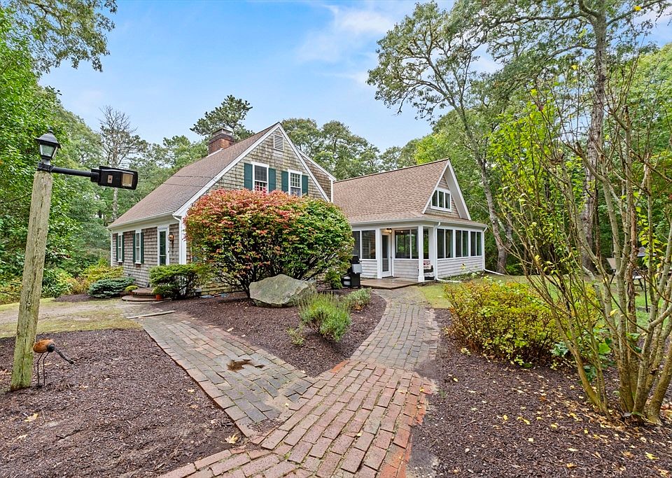 Full of character, this 3BR/2BA Cape is set on 1.47 private acres with deeded access to Upper Mill Pond and a private beach—perfect for swimming, kayaking, and endless outdoor fun. The sun-filled living room features a brick fireplace and wide pine floors, while the kitchen offers granite counters, custom cabinetry, another brick fireplace, and a slider to the deck. Just off the kitchen, a stunning 20’x20’ 3-season room with cathedral ceilings and expansive windows creates an ideal gathering space filled with natural light. A comfortable first-floor bedroom is paired with a nearby full bath, while upstairs you’ll find a spacious en suite bedroom plus a third bedroom with a loft and a balcony overlooking the beautiful 3-season room. Additional highlights include a new roof and an outdoor shower for after-beach convenience.