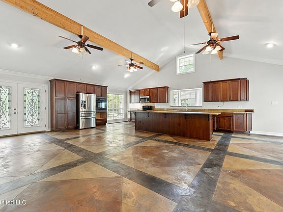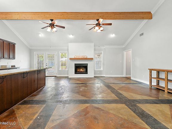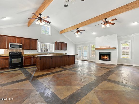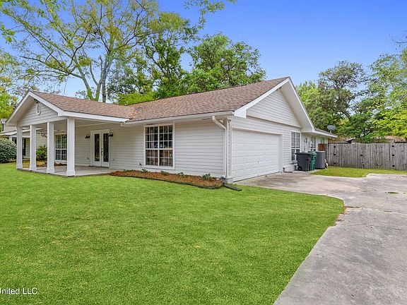 Great location on quiet street and walking distance to the water, Bay Waveland Yacht Club and golf cart to old town. Spacious home with large living room, scored concrete floors, wood burning fireplace, large eat in kitchen, soaring vaulted ceiling in living room, entire interior and exterior of home has been freshly painted. New custom tile showers. Spacious rooms, two car garage and large fenced yard. A must see!