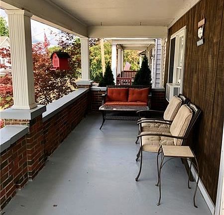 Updated with Newer Metal Roof and Brand New Kitchen with Farm Sink, Granite Countertops, New Cabinets, SS Appliances & Vinyl Plank Flooring that carries into the Laundry, Hall and Full Bathroom on the Main Level. Charming Dining Room featuring Wooden Ceiling and Bay Windows as you enter the home. Spacious Living Room with plenty of natural light. Generous Sized Bedrooms with a Den/Office on the Second Level too (great for private space to work from home or another bedroom or craft room). If you like spending time outdoors then you will enjoy the full covered front porch & rear covered porch for relaxing and/or entertaining. Newer raised deck with above ground pool and a patio area for tables & chairs (maybe even a fire pit for the chilly Autumn nights). Newer Fence along back rear yard. There is a storage room in the basement and oversized garage with room for a workshop and even more storage. Just minutes to major shopping, restaurants, grocery stores and more. Home Warranty Included.