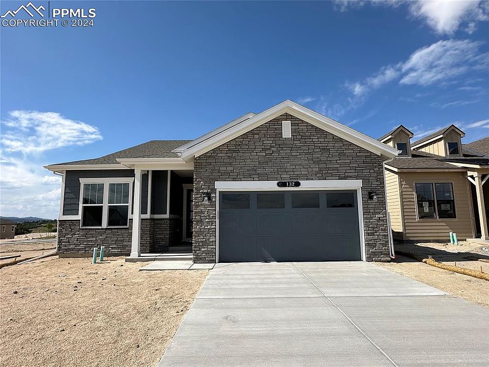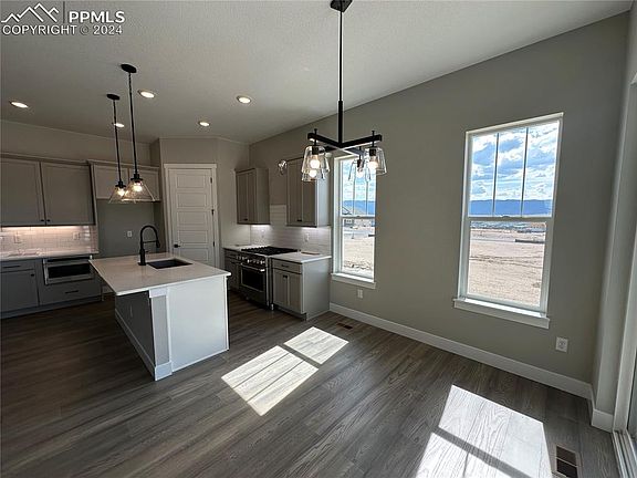 This newly developed Nottingham ranch plan in Home Place Ranch is an all inclusive, luxury 4 bedroom, 3 bath, over sized 2 car garage home with 10' ceilings throughout the main and 9' basement ceilings. The Serenity Series of homes is the perfectly sized home with all of the included luxury that's desired. The open concept on the main level is ideal for those looking to entertain within a manageable space while utilizing the large kitchen island as the heart of the home and the fireplace in the family room as the main focal point. The basement comes with an enormous entertaining space and can be set up however you'd like and a fully finished wet bar included. GE Cafe series appliances, 36"-6 burner gas oven/range with hood vent, soft close cabinets and accent island in the kitchen, quartz counters at all baths, 12"x24" tiles in bath/laundry floors, large walk-in shower with seat, 3"x12" tile backsplash at kitchen, 10' main and 9' basement ceilings, covered rear patio, wood shelving throughout, 50" slimline electric fireplace with stacked stone to the 10' ceilings in the family room, insulated garages and doors with door openers, disc lights, customized under cabinet task lights in the kitchen, black fixtures throughout, 8lb Napa carpet padding, beverage center at the wet bar in the basement, sleek 5" base trim throughout and windowsills, and the list goes on. The Nottingham plan is the ideal layout for those who want to live and recreate in beautiful Monument, CO.