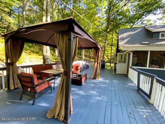 Looking for a modern, yet rustic OASIS in the desirable Hemlock Farms community? This home has so many things renovated including a NEW ROOF (1 yr old) , NEW BATHROOMS with GORGEOUS stone & JET TUB, NEW KITCHEN with GRANITE COUNTERTOPS & MOSIAC FINISHES -STAINLESS STEEL APPLIANCES (under warranty still!!) BAMBOO FLOORS (upstairs) hardwood downstairs , NEW LAUNDRY ROOM, NEW TILE FLOOR AND FULLY RENOVATED LOWER LEVEL (conversion to 4 bedroom). Enjoy dinner in the enclosed sun porch, or out on the MASSIVE 800 SF deck with custom KIDS playground. Includes lower paved OUTDOOR THEATER SPACE for some fun family time! Perfectly rebuilt indoor garage with 1 acre of landscaped property. Dont forget to check out the FABULOUS list of amenities in this community!