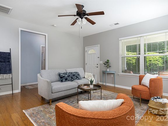 One level living at it's best, this charming 3-bedroom, 2-bathroom cottage offers a single-level design that emphasizes convenience and accessibility. A welcoming front porch. A garage that provides convenient parking and storage space. Open-concept living room and kitchen. The living room serves as the heart of the home, with gas log fireplace offering a comfortable gathering space for relaxing or entertaining guests. The kitchen boasts beautiful countertops, providing ample space for meal preparation and culinary creativity. Modern appliances and plenty of storage. The master suite boasts its own private bathroom, large walk in closet and bonus office/workout space. Step outside onto the back porch and soak in the tranquil ambiance of the surrounding landscape. A creek flows gently behind the property, creating soothing sounds to enjoy your morning coffee. With its move-in ready condition and desirable east Asheville location, this 3-bed,2bath cottage is truly a gem.