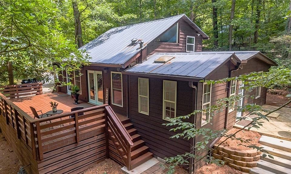 Welcome nature enthusiasts! Nestled in the heart of Mountain Park/Roswell, this cozy bungalow offers endless possibilities as a second home, rental property, or your very own mountain retreat. Immerse yourself in the serenity of heavily wooded surroundings on this picturesque corner lot. Recently renovated in 2023, this charming bungalow boasts two spacious bedrooms, two full bathrooms, a bright loft/flex space, an oversized sun deck, a shaded patio, a barn, and a storage shed. Step into the inviting two-story entry leading to an open living space adorned with a brand-new white kitchen featuring custom quartz counters, a breakfast bar, and stainless-steel appliances. Ascend the new floating staircase with a sleek custom steel railing to discover the bright loft/flex space. On the main level, you'll find two generously sized bedrooms, two fully updated bathrooms with custom vanities, enclosed tiled showers, walk-in closets, and a convenient laundry room. Step outside through the second outdoor entry to a patio space ideal for hosting gatherings around a cozy fire pit. Surrounded by nature and wildlife, this private wooded lot offers a tranquil escape. Located in the highly sought-after Historic Mountain Park Community, residents enjoy access to two fishing lakes, a pool, motorized boat access, golf cart-friendly pathways, and a beautiful park and playground. This property includes parcels ID: 22 329212261447 and 22 329212261702, and a garage permit is available. With no rental restrictions, the possibilities are endless. Don't miss out on this rare opportunity to own your slice of mountain