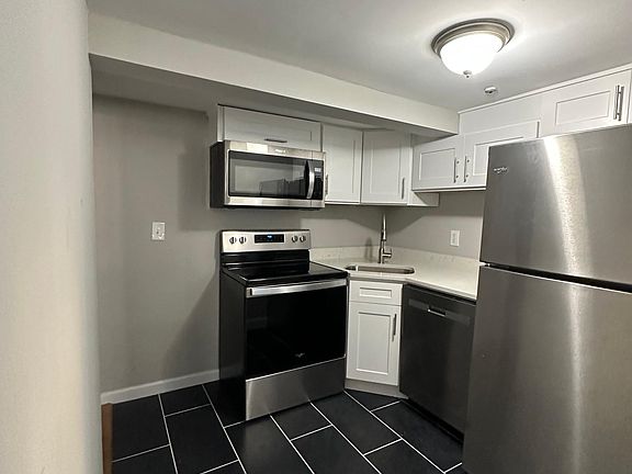Heat and hot water included! Newly renovated 1st floor 1bed in desirable downtown Andover. Hardwood floors, new ceramic tile in kitchen, new tiled bath and white shaker cabinets with quartz counters in kitchen. New SS frig, dishwasher and electric range. Shared laundry in basement included along with off street parking. This unit has two large closets, large bay window in living room. Bedroom is on the smaller size - will not fit a king bed; full size will work the best. Schedule a tour! Rent includes Heat, Hot Water, Water, Sewer and trash. Renter pays for Electric. one cat allowed $35/mo or one small dog under 40lbs at $50/mo. Lease is one year. Non-Smoking building. Income must be 3 times the monthly rent and will be verified. Eviction, Credit and Criminal history will be processed.