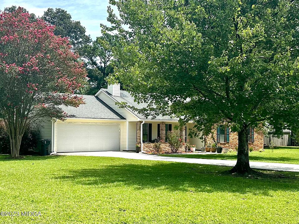 Welcome to a beautifully maintained ranch-style home set on a leveled 1-acre lot in a quiet neighborhood. This residence perfectly balances elegance and practicality. Step inside to discover a kitchen with granite countertops, updated kitchen cabinets, complemented by main areas featuring durable LVP flooring. Stainless steel appliances enhance the modern appeal, with the convenience of a fridge, washer, and dryer included. The living room showcases a beautiful cozy fireplace and tall ceilings. The air conditioner was updated in 2020. Relax in the enclosed back porch, featuring tile flooring. Outside, a 16 x 18 work shop stands, fully insulated, and equipped with heating, cooling, electricity, and water access. This versatile space offers endless possibilities for creative endeavors or relaxation. Experience a harmonious blend of tranquility and practicality in this meticulously cared-for home.