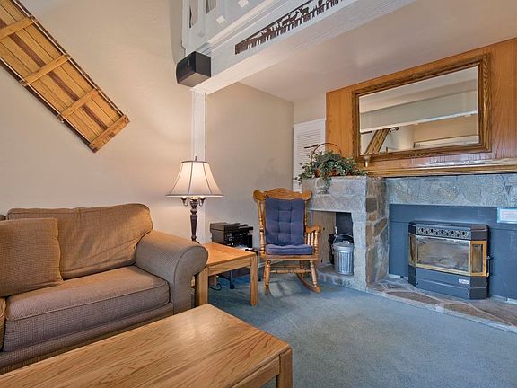 Excellent location next to Canyon Lodge with tandem 2-car garage! Spacious 1+Loft 2-bath condo with views to Lincoln Mountain. All windows and patio slider have been replaced with vinyl double pane and fireplace is a pellet stove. Small condo project with on-site hot tub and laundry.