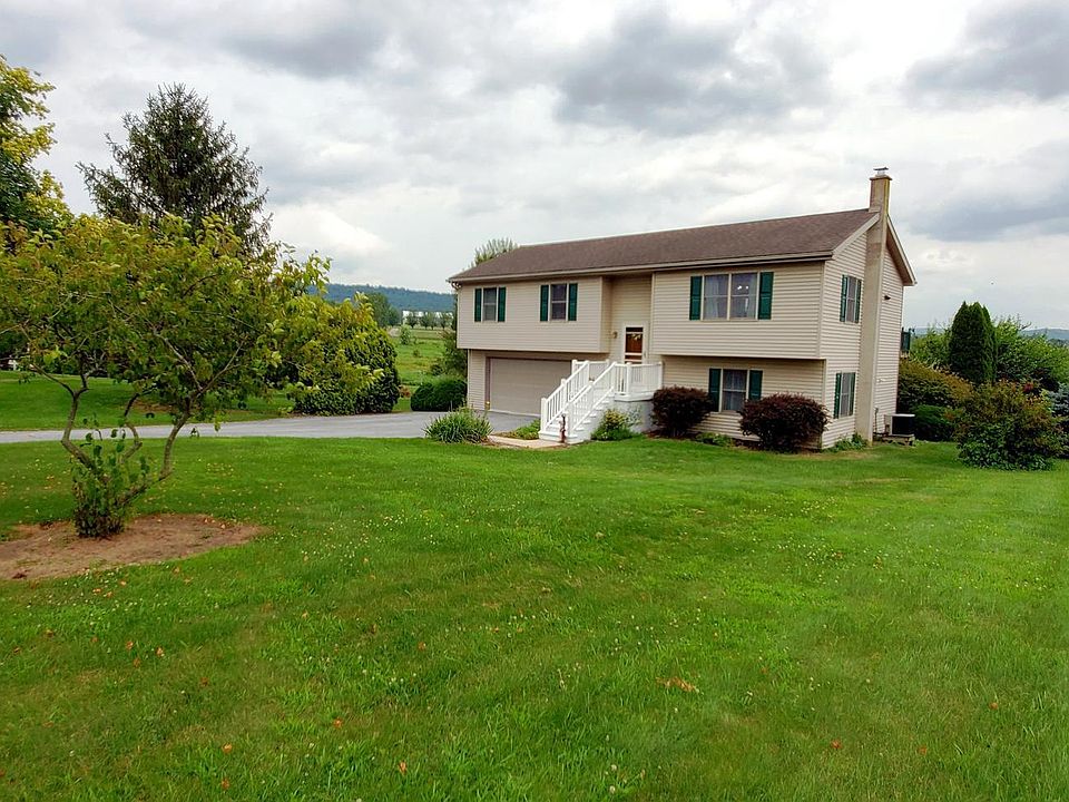 Imagine enjoying peaceful evenings at this beautiful property with endless views of the Blue Mountains. This 3 bedroom 1.5 bath home sits on an expansive 1.38 acre lot. Possibilities abound in this perfect setting. The kitchen, dining area and living room flow together in a welcoming manner. The bedrooms are all generous sizes with ample closet space. The primary bedroom features a half bath as well as a window that overlooks the large back yard. Downstairs you will find an inviting family room which features a woodstove which could be used to heat the entire home. The lower level also provides inside access to the large 2 car garage and the laundry and utility area. The deck, which can be accessed from the backyard or the kitchen, provides additional entertaining area and is a nice perch to keep an eye on the backyard. The lawn has flowers and mature plants including an apple tree. There is ample room for activities, entertaining or gardening. This property has provided a wonderful home in which to live for the current owners. They are excited to see a new owner add their own special touch to make it their own. Be sure to schedule your private tour of this home soon.