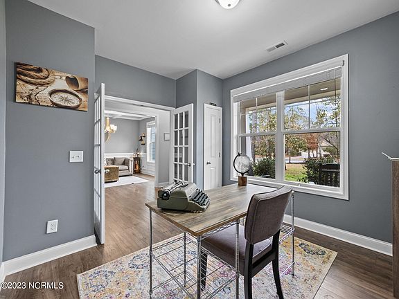 Located in the exclusive waterfront community of Mimosa Bay, this is the one worthy of being called home! Situated on a large corner lot, this stunning, spacious home features 4 bedrooms, 3 full baths, over 2,900 sqft, and a 3-car garage. Built in 2018, this home features today's trends of gorgeous LVT flooring, a modern color scheme, and high ceilings. Styled for easy entertaining, the open concept gourmet kitchen features stainless-steel appliances, granite countertops, gas cooktop, wall oven, dishwasher, tile backsplash, pantry, and an adjoining breakfast nook and family room pre-wired for surround sound with woodburning fireplace. As you continue to explorer the main floor you'll discover a formal dining room, office, full bathroom, and a bedroom. The ambiance continues as you make your way to the second level. You'll discover the oversized owner suite that feels more like an oasis; featuring a sitting room with it's own closet, an en-suite bathroom with a beautiful tiled shower, granite countertops, and soaker tub, and a spacious walk-in closet. This floor also features two perfectly sized guest bedrooms, a media room that's pre-wired for surround sound, a full bath, and the laundry room. Outside you're sure to enjoy the tranquility this community offers, as you're just a short walk from the boardwalk. Other community amenities include a clubhouse, community pool, pickleball and tennis court, playground, and more! Also, just a short commute to North Topsail Beach, Camp Lejeune, Stone Bay Marine Corps Base, and area shopping and dining. Don't miss your chance at this remarkable home!