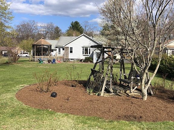 An addition to the very charming original cottage/bundalow includes a large master bedroom with en-suite bath on the main level, and a large family room below, making this home so much larger than it might appear. Many updates have been made in recent years, including full remodels of the kitchen and second bath. The kitchen features new cabinets, countertops and stainless appliances. The hardwood floors shine from recent refinishing. With all of the updates, replacement windows and newer HVAC system this is truly a move in and enjoy home. The family room adds space for large get togethers in a warm space, with gas fireplace and attractive built in cabinetry. Gatherings will also be fun in the back yard entertaining area, with deck, patio, gazebo, fire pit area and large, level lawn space. Enjoy the lovely landscaping, with gardens, blueberry bushes and ornamental trees. The former chicken coop serves now as a garden shed, with carport and sugar house additions! So much to love!