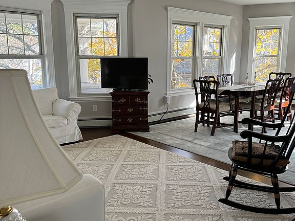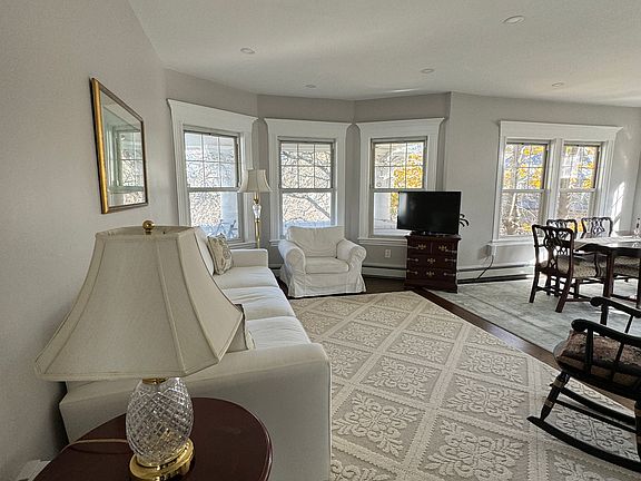 Charming bright home with tree top views from all rooms and porch. On quiet street in residential area of historic Chestnut Hill located between Brookline and Newton. Modern bright kitchen with island, new stainless appliances including gas stove. Living room flows into dining room and kitchen. Master bedroom with master bath plus two additional bedrooms and full bath. Many large windows, freshly painted walls and beautiful hardwood floors. Adjacent private roofed porch with pillars allows outdoor enjoyment of breezes rustling in the surrounding trees with full views of the children playing below in rotunda. In unit washer/dryer. Unfurnished. Three designated parking spaces. One year lease. One month deposit. Tenant pays utilities. Owner pays HOA fees.