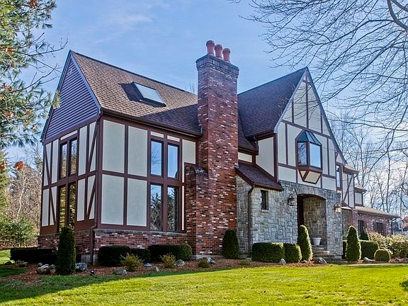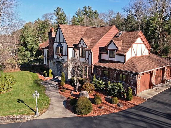This iconic, custom English Tudor sticks out as one of the focal points of this East Longmeadow neighborhood. With man made rock walls, and well groomed landscaping giving this house all the character, a buyer could ask for. This beautiful home features a large kitchen area with cherry cabinets, an island, dual ranges, breakfast bar, and access to the formal dining room. The sunroom offers views of the expansive deck, backyard and 32x14 garage. From the private office, the living room wows you with 27-foot ceilings, a floor-to-ceiling cobblestone fireplace, and windows. With hardwood and tile throughout, the sellers spared no expense in maintaining this exemplary home. Upstairs, the master bedroom boosts a seating area, his and her closets, walk-in closet, an oversized private ensuite, fitted with huge jacuzzi style tub, his and her sinks, and vanity. Also, newly renovated basement, including an additional bathroom. The owners took pride in this renowned home, which can now be yours!