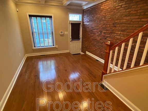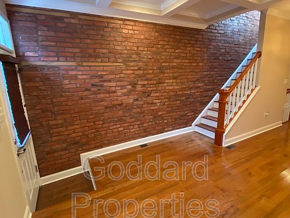 and laundry room. Brownish STUNNING RENOVATIONS, just a block and half from Patterson Park. Property features an elegant open floor plan, hardwood floors, beautiful kitchen with granite counter tops, stainless steal appliances, granite kitchen island, beautiful mud room with half-bath with laundry. Brownish interior brick walls decor this charming town home, parking pad.