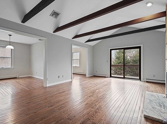 It's nearly impossible to find this much space in Bergen County at this price point! This end unit feels more like a home offering just under 2,000 SF on two levels, 915 SF in the basement and an attached garage. Spacious entry foyer w/ large coat closet. Just to the left you'll find a powder room and separate laundry room. Impressive great room showcases cathedral ceilings w/ exposed beams and floor to ceiling stone fireplace built as wood burning, but converted to gas. The great room provides access to a deck for outdoor entertaining and a bonus room that could easily be an office or den. A large eat-in-kitchen and dining room complete this level. Huge master suite boasts walk-in-closet, double wide closet and a massive ensuite bath w/ jetted tub, double wide shower, 2 sinks, toilet and bidet. 2nd bedroom and full bath are also found here. Full basement showcases large family room, summer kitchen, full bath and large storage area. House comes w/ generator and transfer switch.