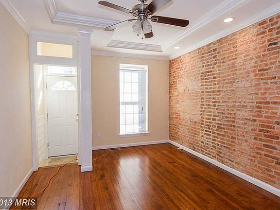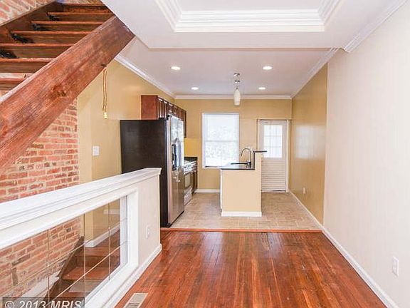 CUSTOM PATTERSON PARK RENNOVATION WITH 3 FINISHED LEVELS & LARGE REAR DECK! LR w/ hw floors, exp brick, & tray ceilings, island kit w/ breakfast bar, granite counters, ss appliances, & tile back splash, 2nd lvl w/ 2 large bedrooms w/ exposed brick & full bath w/ wainscoting, fin basement w/ family room, 3rd bedroom, & full bath, rear patio, & 2nd level rear deck. Located close to Patterson Park