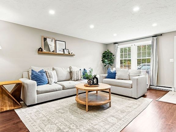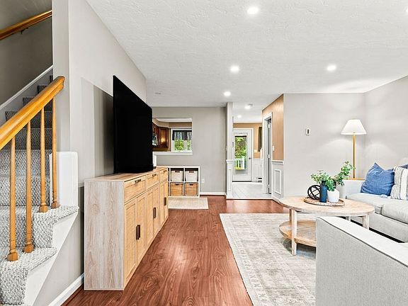 NORTON -- Located in desirable Stage Coach Village, this beautifully maintained townhouse offers 2 bedrooms, 1.5 baths, and two deeded parking spots plus guest parking. The large living room flows into an updated kitchen with a breakfast bar and dining area. Upstairs, two spacious bedrooms share a full bath with convenient second-floor laundry. A partially finished basement provides additional living space, currently being used as a primary suite but ideal for a family room. A newer composite deck overlooks your private, wooded backyard. Further updates include a new hot water tank in 2023, custom blinds, recessed lighting, and replacement windows. Close to highways, train stations, and the Mansfield/Norton Rail Trail. It's the turn-key condo you've been waiting for!