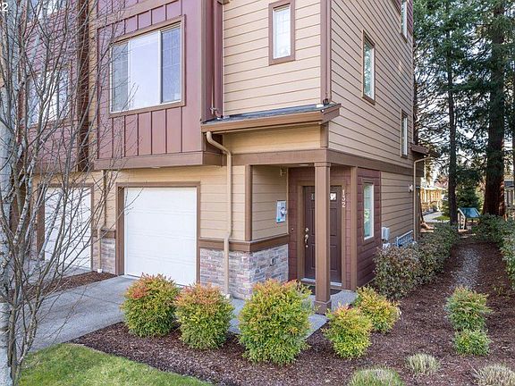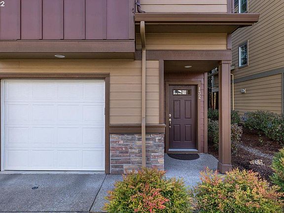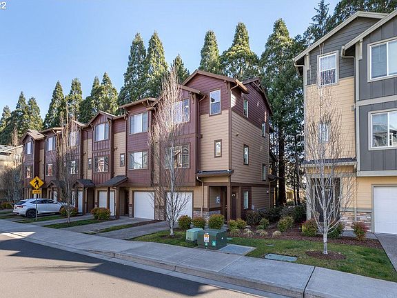 BRIGHT and beautiful contemporary end-unit in coveted Sequoia Village. Spacious, OPEN concept, main floor GREAT room w/ GOURMET kitchen featuring a HUGE granite island, stylish backsplash, modern cabinetry, stainless appliances, and gas stove. HIGH ceilings throughout, laminate floors, gas fireplace, AC, and private balcony. Extra deep, 2-car, tandem garage plus driveway parking. Located on Nike/Intel corridor, .1mi to shopping. 1.2mi MAX station, 2mi to Orenco Station. Seller prefers rent back. [Home Energy Score = 7. HES Report at https://rpt.greenbuildingregistry.com/hes/OR10199933]