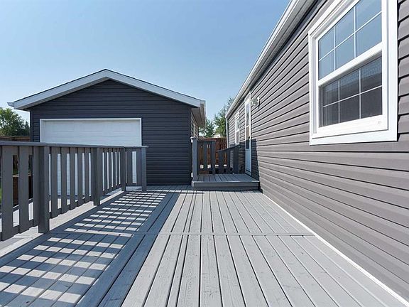 Welcome to 132 Grey Owl Place! Located in a quiet cul-de-sac with RV parking, this gorgeous 3 bedroom, 2 bath mobile home has been beautifully maintained and thoughtfully upgraded. Step inside to an open concept floor plan featuring fresh paint, updated flooring, and a renovated kitchen complete with island, SAMSUNG stainless steel appliances, backsplash, newer countertops, and plenty of cupboard space. The spacious master retreat offers a large walk-in closet and a renovated 4pc ensuite with a jetted soaker tub. This home has seen numerous updates, including a brand new water heater, inspected and serviced furnace, newer shingles, siding, and windows. The garage is gas heated and features epoxy flooring with 3-foot powder-coated diamond plating. The exterior offers a driveway extension that’s been freshly sealed, newer fencing, a 10x12 storage shed, and a new belly bag with upgraded PEX plumbing and heat trace underway for the new buyers. Additional highlights include air conditioning, front loader washer & dryer, and a landscaped lot that backs onto greenspace and a playground. This property is truly turn-key and move-in ready for its next owners. Call today to book your private viewing!