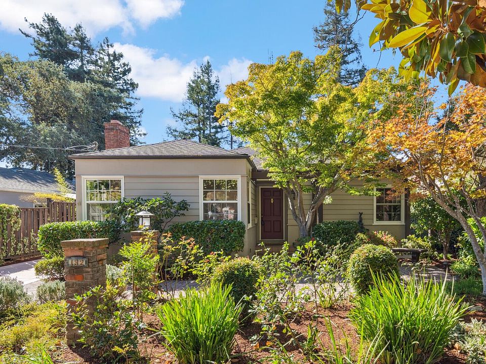 Charming, light filled home in move-in condition. Nestled on a wide, tree lined street, surrounded by Pride of Ownership and more expensive homes. Lush, front curb appeal with brick columns and mature trees. Foyer welcomes you to the spacious formal Living Room w/wood burning fireplace. Wide archway opens to the formal Dining Room. Cheerful Kitchen w/center island and 2nd dining area. Interior Laundry Closet. Adjoining Sun Room (used as a Family Room) w/high vaulted ceiling offers access to rear deck and gardens with meandering paver pathways. 2 good sized Bedrooms, 2 full updated Bathrooms. Handsome hardwood floors throughout the home. New white baseboards, New interior paint throughout the home. Detached smaller sized two Car Garage w/extra storage area + rear shed. Long driveway for extra parking. 1,580 square feet of gracious living space. 6,500 square foot lot, Near popular Stafford Park and other smaller parks. Just moments away from delightful downtown Redwood City w/crowd pleasing restaurants, boutiques, movie theater, schools, library, rec center, Sequoia Hospital and so much more. Redwood City, a historical and thriving town on the Peninsula. Do Not Miss this rare opportunity to own a delightful home in the Oak Knoll Manor Neighborhood.