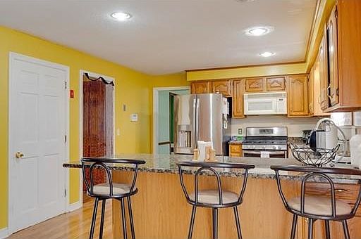 Welcome to your charming, spacious classic colonial home with 4 bedrooms and 2.5 baths in the highly desirable west Taunton. The 1st level has your bright family room, living room with a cozy fireplace, elegant dining room, huge eat-in kitchen with all-updated appliances, new granite countertops and pantry, a laundry room, and a convenient 1/2 bath. The 2nd level has 4 large bedrooms and 2 baths, which includes a generous master bedroom with a master bath. Other features to note: gas heat and central AC, a sizable 2-car garage with direct access into the home. This home has the entire package: curb appeal, large rooms, fireplace, walk out deck with large outdoor entertaining space, and a beautiful backyard perfect for your family to enjoy. Excellent location with convenient access to highly ranked public schools. So much more to see.